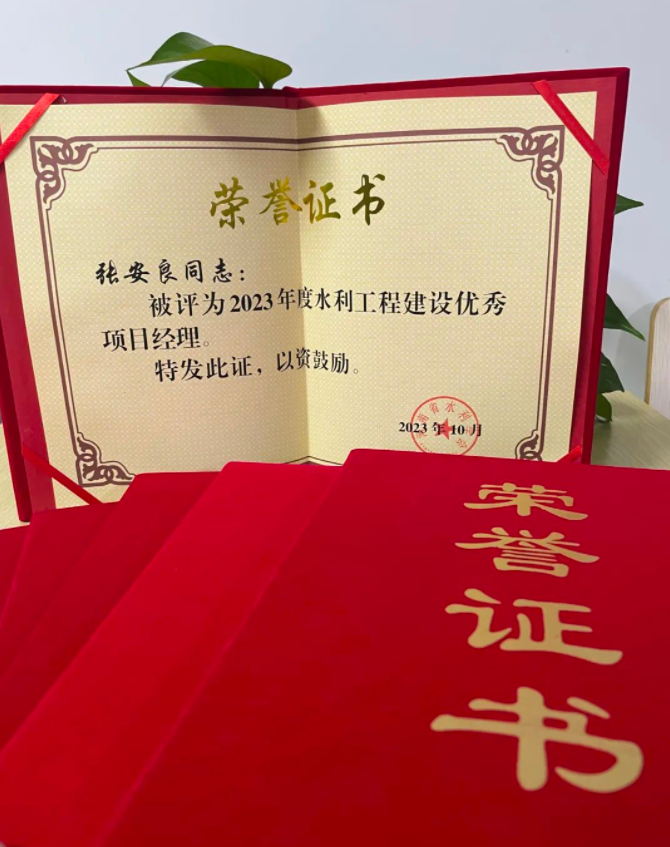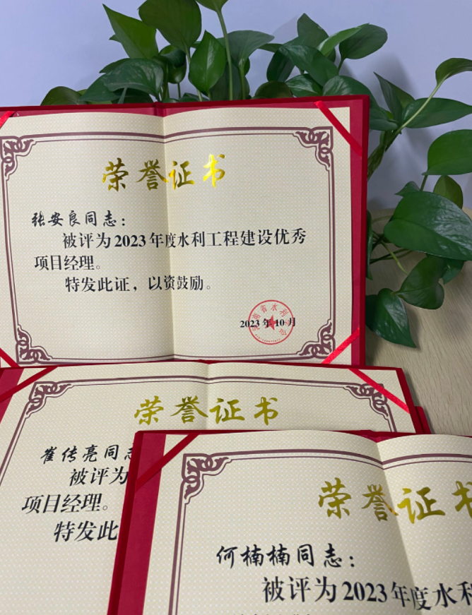 近日,河南省水利學(xué)會頒發(fā)了2023年度水利工程建設(shè)優(yōu)秀項(xiàng)目經(jīng)理的榮譽(yù)證書,我司多位同志榮獲此榮譽(yù)!